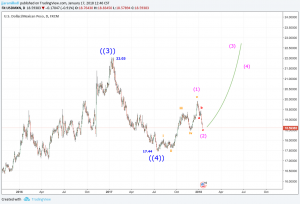 Sin embargo, si bien las noticias tienen un impacto inmediato y directo en el precio del peso frente al dólar americano, nos inclinamos más por el análisis técnico que tiene que ver con el comportamiento del precio en los gráficos; y nuestro análisis nos lleva a concluir que el precio se encuentra finalizando la onda (2), siempre y cuando se mantenga por encima de 18.40, de otra manera estaríamos ante otro escenario, pero en caso que el conteo sea correcto, estaríamos en el inicio de la onda (3) que de acuerdo al análisis de ondas Elliot Wave, la onda 3 es la más deseada por los inversores dado que es la más prolongada y por ende la más rentable, y en este caso tiene un precio objetivo de nuevos máximos, por encima de los 22 pesos por billete verde.